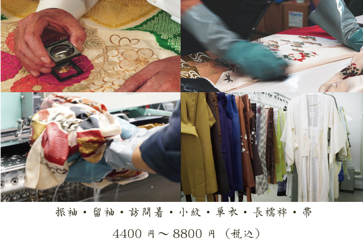 高品質の溶剤と特殊洗剤を使用し、着物本来の風合いを損なわずに洗います。